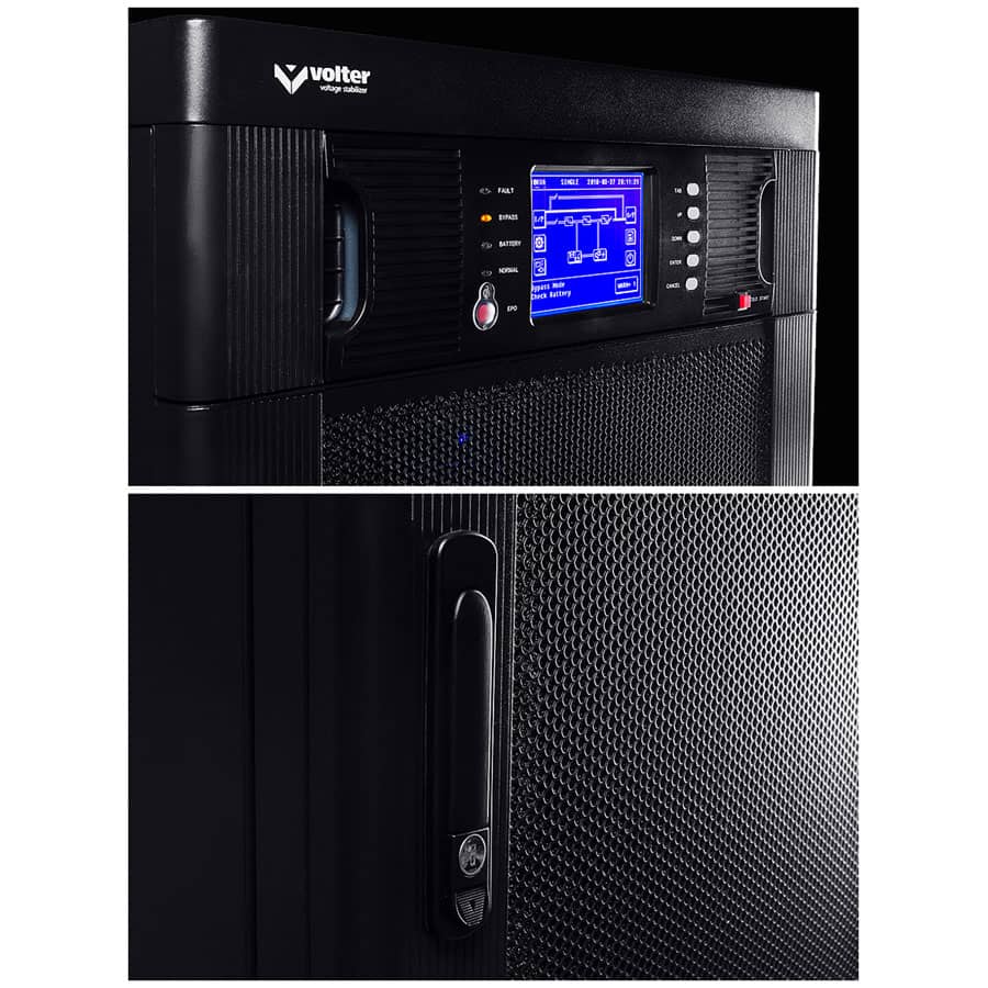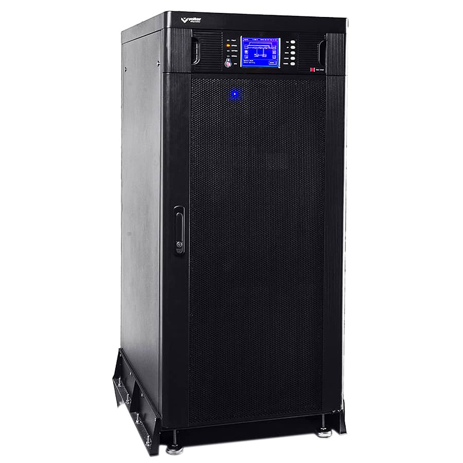 Джерело безперебійного живлення Volter UPS максимальною вихідною потужністю 30KVA максимальною потужністю 27 кВт з подвійним перетворенням – це трифазне, економне і дуже надійне обладнання, яке забезпечить захист електроживлення критичних навантажень – від зростання і провалів напруги, електромагнітних і радіочастотних перешкод, а також дасть можливість безпечно відключити чутливу до втрати електропостачання апаратуру.