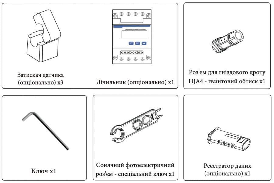 Будь ласка, перевірте наступну таблицю, щоб переконатися, чи всі деталі входять до комплекту: